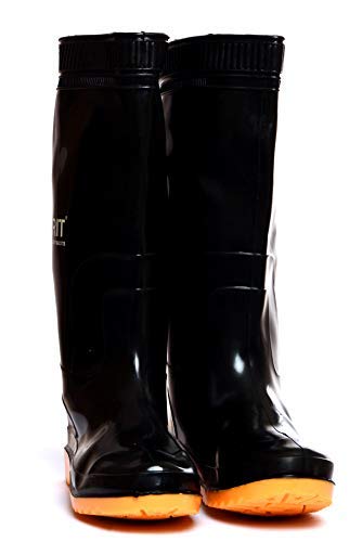 Gumboots Men’s Waterproof Durable Rubber Outdoor Working Boots with Highly Designed Sturdy Grip (Black)